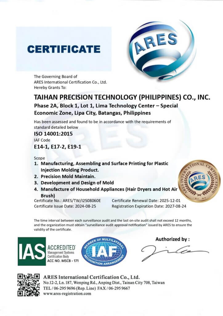 In terms of overseas investment, to achieve vertical integration of the supply chain, the autonomy of technology, and provision of superior service quality. TaiHan Precision has laid out regions including DongGuan, China; Hai Duong, Vietnam; and Lima, Philippines to provide more flexible services to customers with higher strategic thinking.